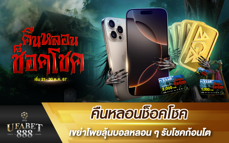 คืนหลอนช็อคโชค เปิดคืนหลอนต้อนรับฮาโลวีน ลุ้นรางวัลสุดช็อค บิ๊กแจ็กพ็อต iPhone16Pro ทองคำแท่ง 2 สลึง และเครดิตฟรี รวมมูลค่ามากกว่า 200,000 บาท ดีลลับพิเศษเฉพาะเว็บแทงบอล UFABET888 เว็บสล็อต คาสิโนและหวยออนไลน์ทั้ง 8 เว็บ ได้แก่ Betflik168, PIGSPIN & PIGBET, HungryPussy888, 918KissME, PG168, และ 116Lotto เว็บซื้อหวยออนไลน์ แล้วมาเริ่มภารกิจสุดตื่นเต้นนี้กันได้ตั้งแต่วันที่ 21-30 ตุลาคม 2567 และเปิดไลฟ์สด เข้าลุ้นของรางวัลใหญ่กันในวันที่ 31 ตุลาคมที่เดิมที่เราคุ้นเคย