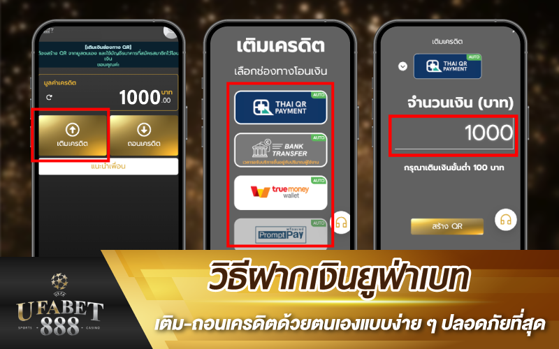 วิธีเติมเงินยูฟ่าเบทเพื่อเล่นเกมเดิมพันออนไลน์ได้สะดวกยิ่งขึ้น ผู้เล่นสามารถทำตามขั้นตอนนี้ได้เลยด้วยตนเอง โดยไม่ต้องผ่านแอดมิน หรือตัวแทนคนกลาง ที่สำคัญไม่ต้องรอระบบดำเนินการนานและไม่มีค่าธรรมเนียมแอบแฝง ทำรายการเท่าไหร่ก็ได้ตามใจตลอด 24 ชั่วโมง ไม่จำกัด ไม่มีขั้นต่ำ