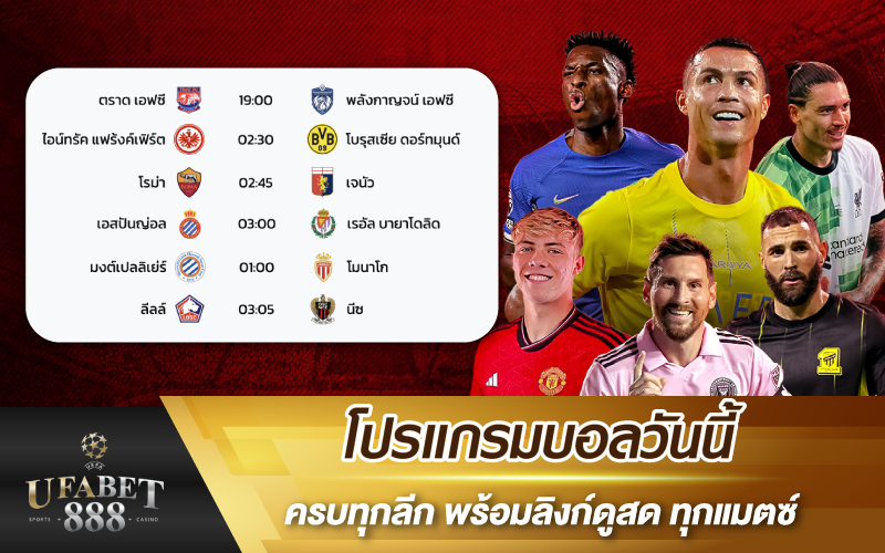 ค่ำคืนนี้เตรียมพบ โปรแกรมบอลวันนี้ กับการแข่งขันฟุตบอลจากลีกชั้นนำทั่วโลก โดยแมตช์เด็ดอยู่ที่ศึกบุนเดสลีกา เมื่อ เสือเหลือง โบรุสเซีย ดอร์ทมุนด์ บุกเยือน ไอน์ทรัค แฟร้งค์เฟิร์ต ขณะที่ทางฝั่งอิตาลี โรม่า จะเปิดบ้านรับการมาเยือนของ เจนัว ใครที่เชียร์ทีมไหนอยู่ เช็กเลยวันนี้ที่ยูฟ่าเบทว่าลีกในใจของคุณลงแข่งบ้าง