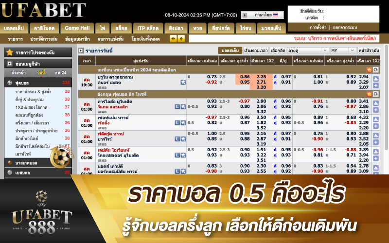 ราคาบอล 0.5 คืออะไร รู้จักบอลครึ่งลูก เลือกให้ดีก่อนเดิมพัน สำหรับนักเดิมพันหน้าใหม่ การเข้าใจ “บอล 0.5” หรือ “บอลครึ่งลูก” นับว่าเป็นสิ่งสำคัญที่สุดของการเริ่มต้นเล่นบอลบนมือถือให้ได้เงิน เพราะเป็นอัตราต่อรองเบสิค ที่เราพบเห็นกันได้บ่อยที่สุดในการเดิมพันฟุตบอลออนไลน์ การรู้จักราคาบอลชนิดนี้จะช่วยให้นักลงทุนมือใหม่สามารถเข้าใจ และตัดสินใจลงเดิมพันได้อย่างมั่นใจมากยิ่งขึ้น